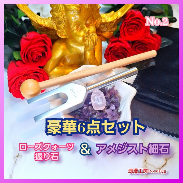 豪華!限定 【 好評 6点セット】 ☆現物撮影画像 掲載 No.2 クリスタルチューナー マレット ローズクォーツ握り石 アメジスト細石 50g に 収納ポーチと お手入れクロスが オマケに付いた 豪華 ☆ 6点セットでのお届けです☆ 「天使界の扉を叩く音」 音叉 クリスタルチューナー「4096Hz」 ♡リラクゼーション☆ヒーリング 美容 健康 美音で浄化 心が澄み渡り リラックス効果も! 又 瞑想 ヨガ ヒーリングアイテムとして 集中力が欲しい時等 ご使用になられる方もいらっしゃいます。 ★嫌な人に会わねばならなかった ★嫌な思いをした ★念を感じる ★人 物 場 を浄化したい 等 ☆癒し ☆ヒーリング ☆リラクゼーション ヨガ 瞑想 ☆リラックス 音叉=人や物 空間の浄化を行う ヒーリングアイテムです✧︎*。 ★又 簡単に洗え無い物☆ (お財布 鞄 コート 靴 )などに対しての浄化に使われる方もいらっしゃいます。 ♡握り石は お守りの持ち石としても♡ ☆セット内容☆ ○(音叉)クリスタルチューナー(4096Hz) 約=11.5×2.5cm ○木製マレット 約=15.5cm ○ローズクォーツ握り石 ○アメジスト細石 約=50g ○収納ポーチ ○お手入れクロス ☆合計6点セット☆ ☆サイズボード上での☆ 「現物撮影 画像掲載」 (セットの細石を使用した際の ディスプレイ見本は 代表写真です 6点セット& サイズボード画像掲載の握り石がお届けのお品です 。) ※ディスプレイ用品 天使の置物 小皿は商品に含まれません ♡石が呼んだか♡貴方が招いたのか?☆お目に止まった方如何ですか?☆ 〇全ての天然石はサロン同様浄化後お届け致しております......✧︎*。 【 検索ワード 】 クリスタルチューナー 音叉 エンジェルチューナー クリスタルチューナー4096Hz リラクゼーション 4098c ヒーリング 美容健康 癒し 天使界の扉を叩く音 天使界 天使 エンジェル 開運 開運インテリア 開運グッズ 浄化 浄化セット 浄化グッズ アイテム 天然石 ブレスレット ブレスレット浄化 天然石浄化 パワーストーン ピンク 紫 パープル セット インテリア 装飾 ディスプレイ 細石 さざれ サザレ ローズクォーツ 握り石 アメジスト アメジスト細石 幸運 引き寄せ 邪気祓い 邪気 魔除け 厄除け 悪魔祓い 瞑想 ヨガ ヒーリング 癒し 落ち着く 集中力 受験 試験 就活 恋活 恋愛運 仕事運 新年 新生活 門出 クリスマス クリスマスプレゼント リラクゼーション お守り 限定 限定品 好評 6点セット リラックス 美活 空間 空間清浄 空間浄化 幸福 幸運の引き寄せ スピリチュアル 占い 教室サロン 寒河江博子 HirokoSAGAE 浪漫工房RoseEgg RoseEgg roseegg