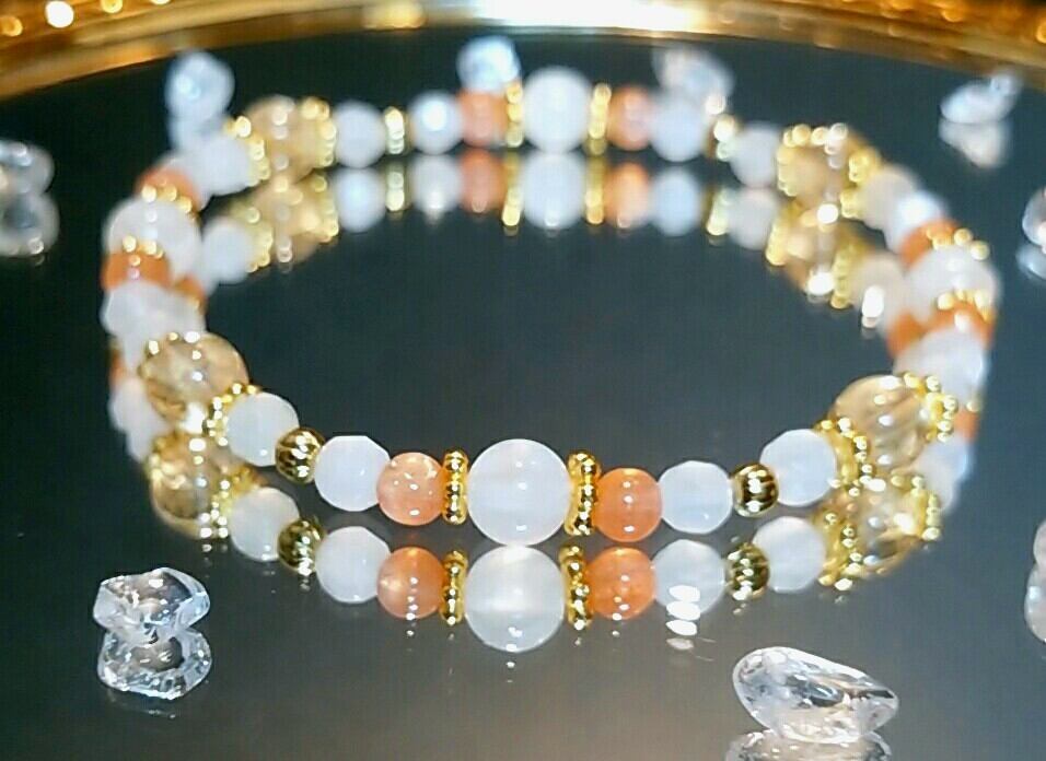 Serena レインボーシトリン ブルームーンストーン オレンジムーンストーン ホワイトムーンストーン パワーストーンブレスレット