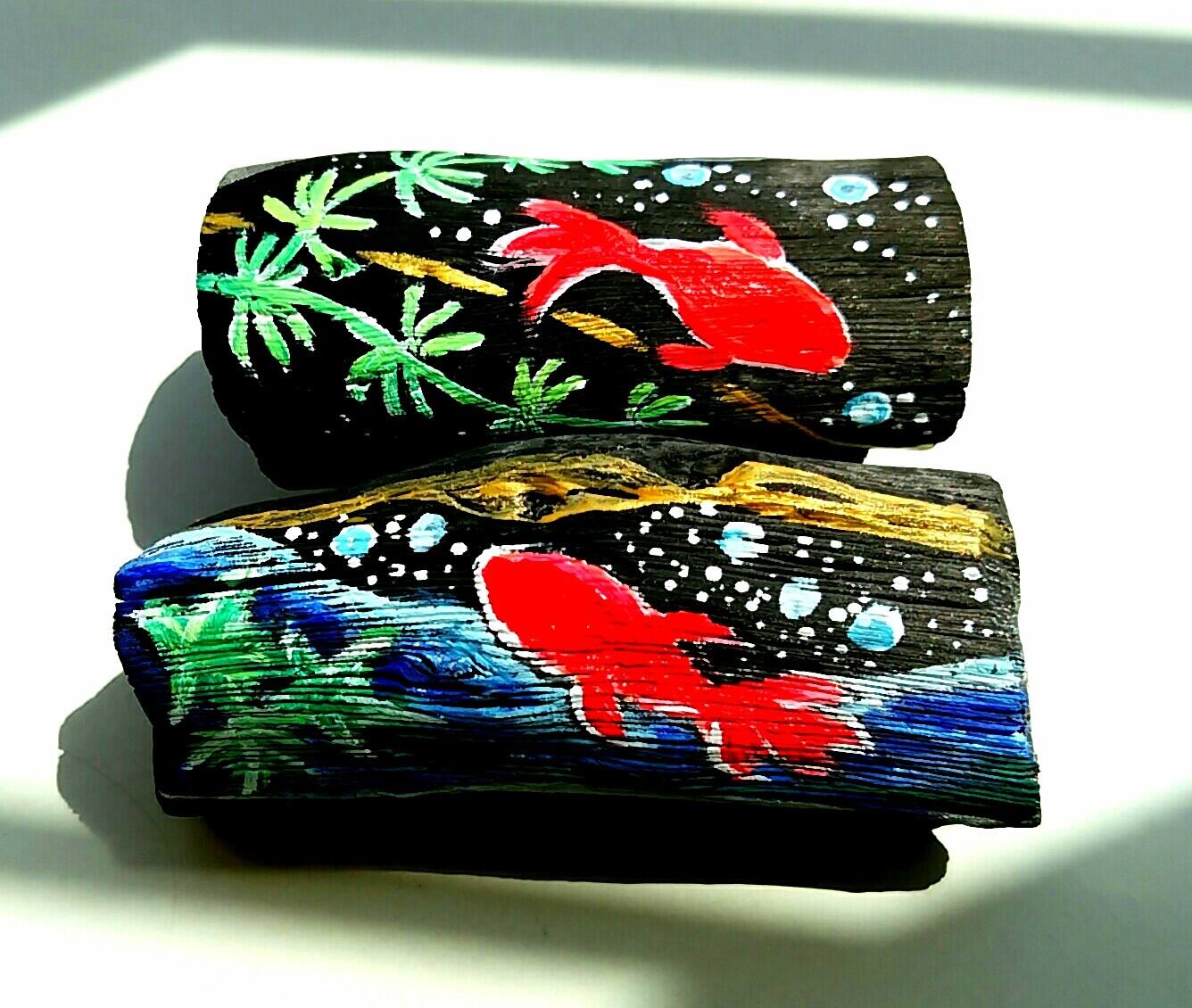 浄化開運インテリア用備長炭絵付 「金魚2本組」 絵炭
