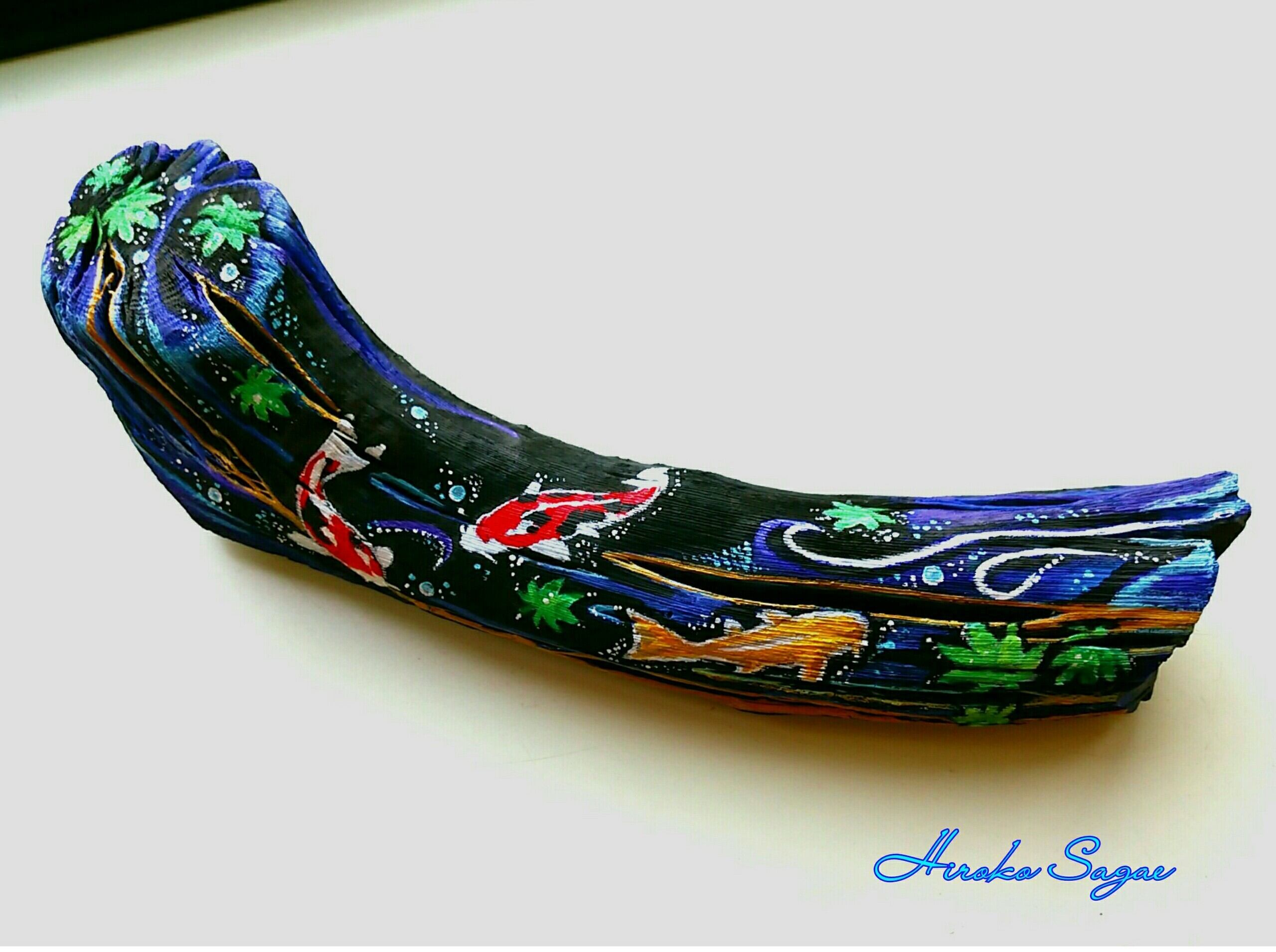 開運 備長炭オブジェ インテリア備長炭 絵炭 「錦鯉 」