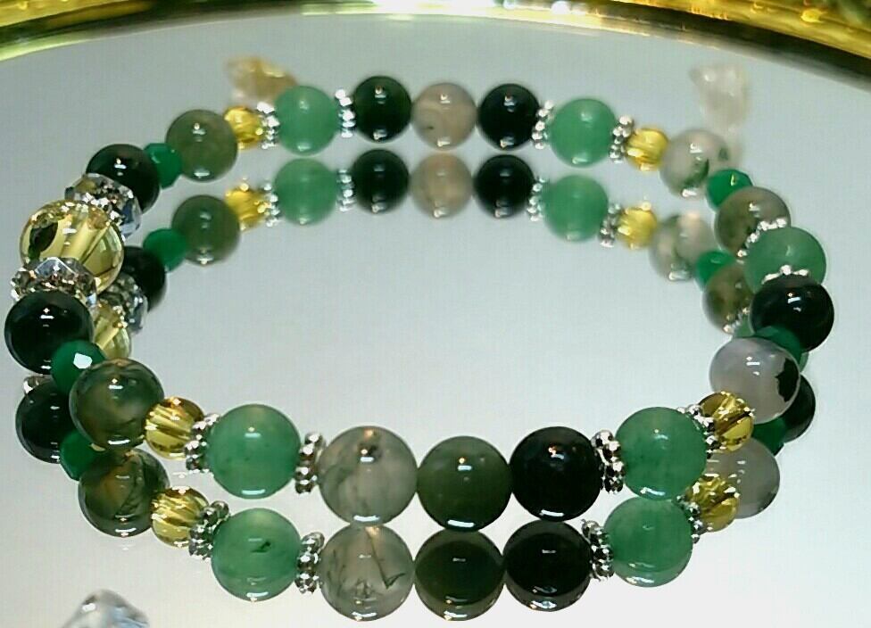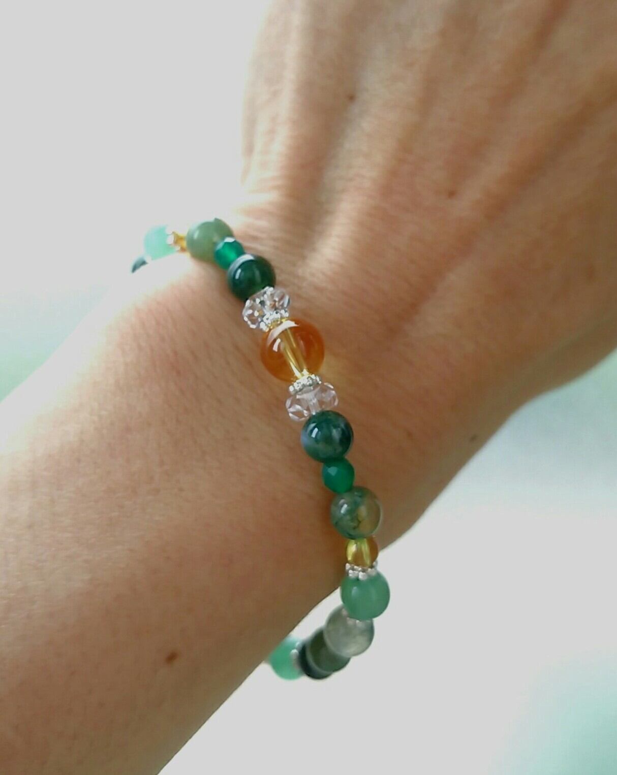 健康長寿☆金運 癒し 「森林浴」 モスアゲート シトリン アベンチュリン アゲート パワーストーンブレスレット