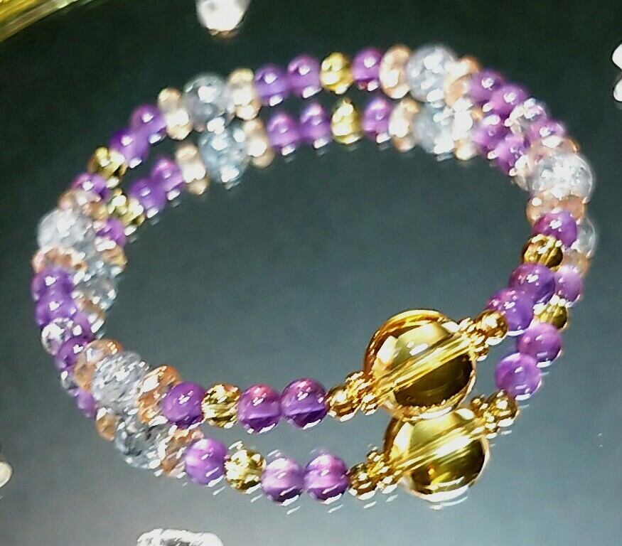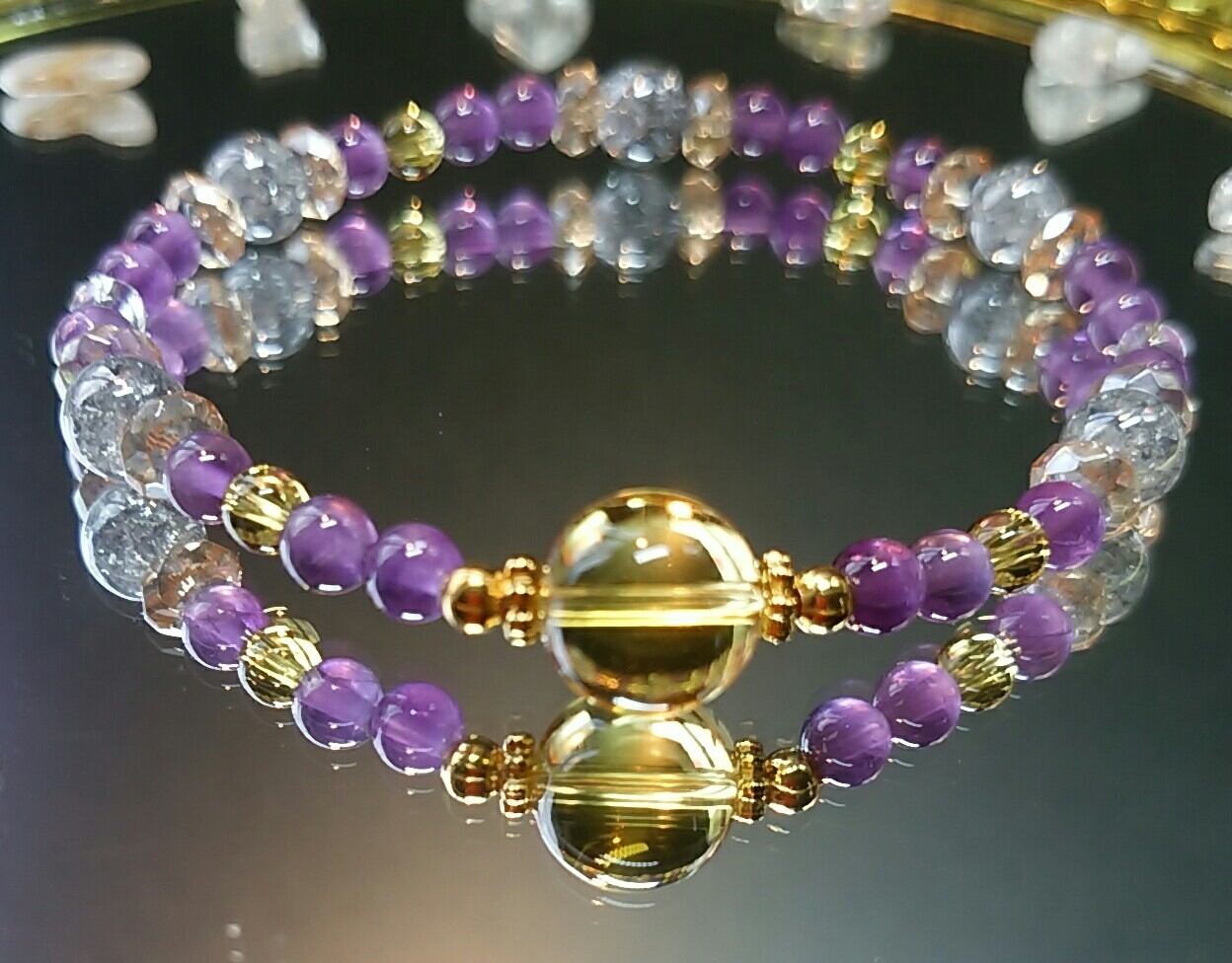 紫と黄色は限られた人しか着用出来ない時代 国もありました、透明感のある紫と黄色のブレスレットは貴女の存在を輝かせてくれるでしょう、