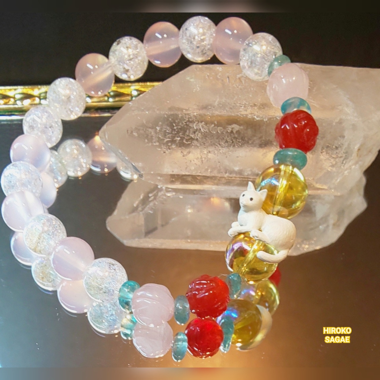 愛猫・猫ブレスレット・パワーストーン猫・猫アクセサリー・猫グッズ・花畑の猫・虹の橋・金運・絆を強くする・縁結び・恋愛運・目標達成・対人関係・ポジティブ・魔除・厄除け・オーラの保護・夢の実現・スピリチュアル・ヒーリング・教室サロン・寒河江博子・HirokoSAGAE・浪漫工房RoseEgg・RoseEgg