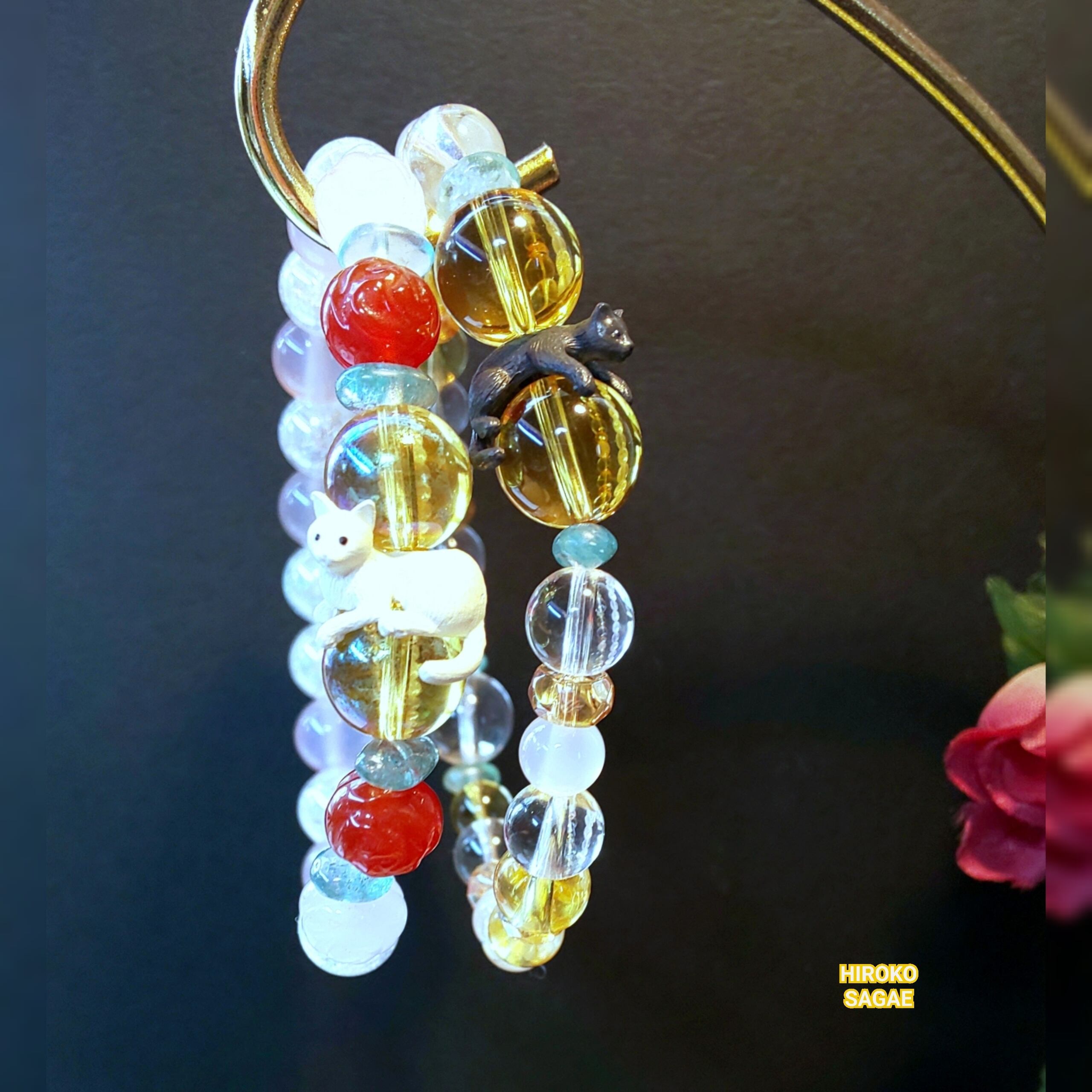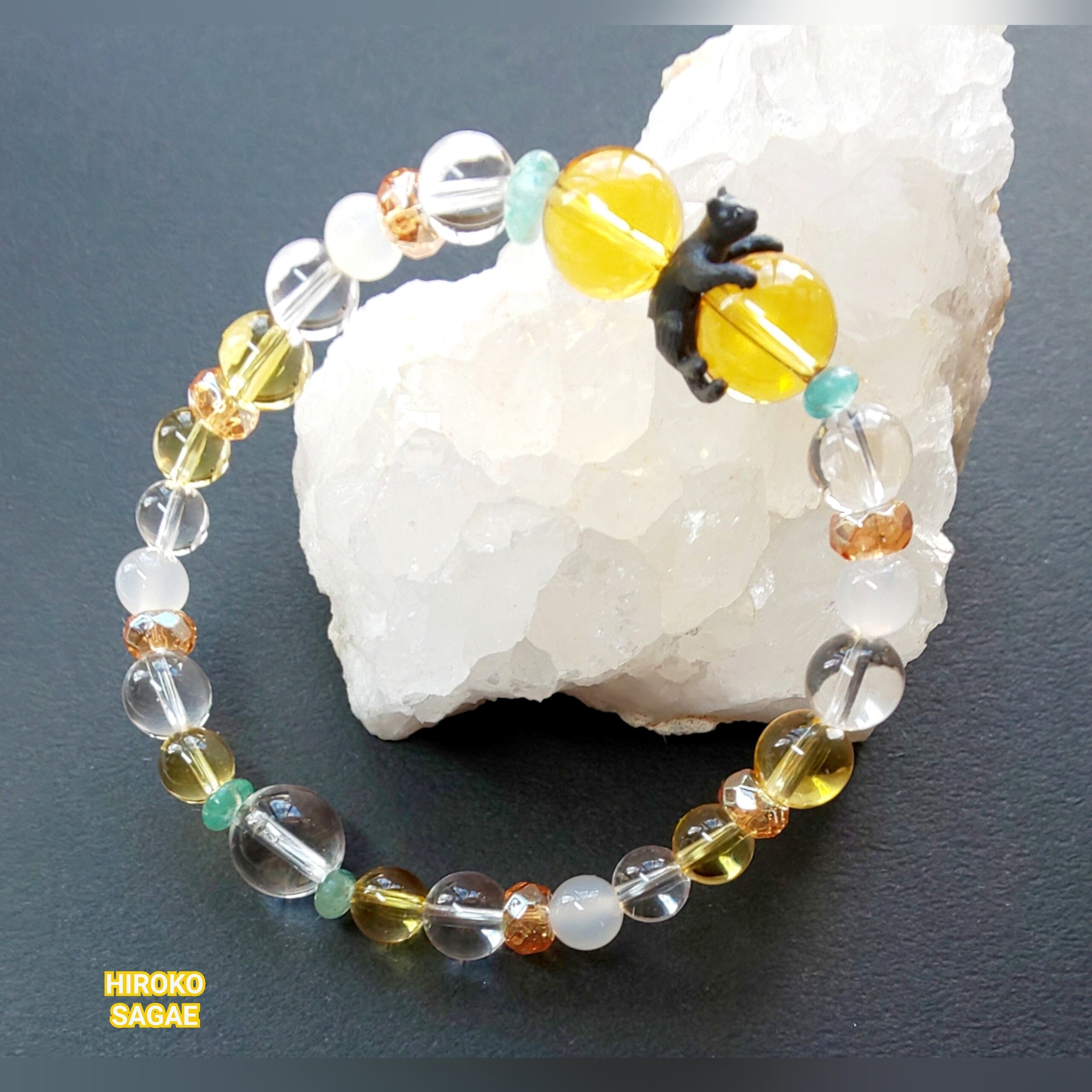 太陽を抱く猫 福猫 番猫 招き猫 黒猫 猫 ねこ ネコ シトリン スカイアパタイト ゴールデンオーラ パワーストーン猫 猫アクセサリー 猫部 猫の日 「ブラック / イエロー」