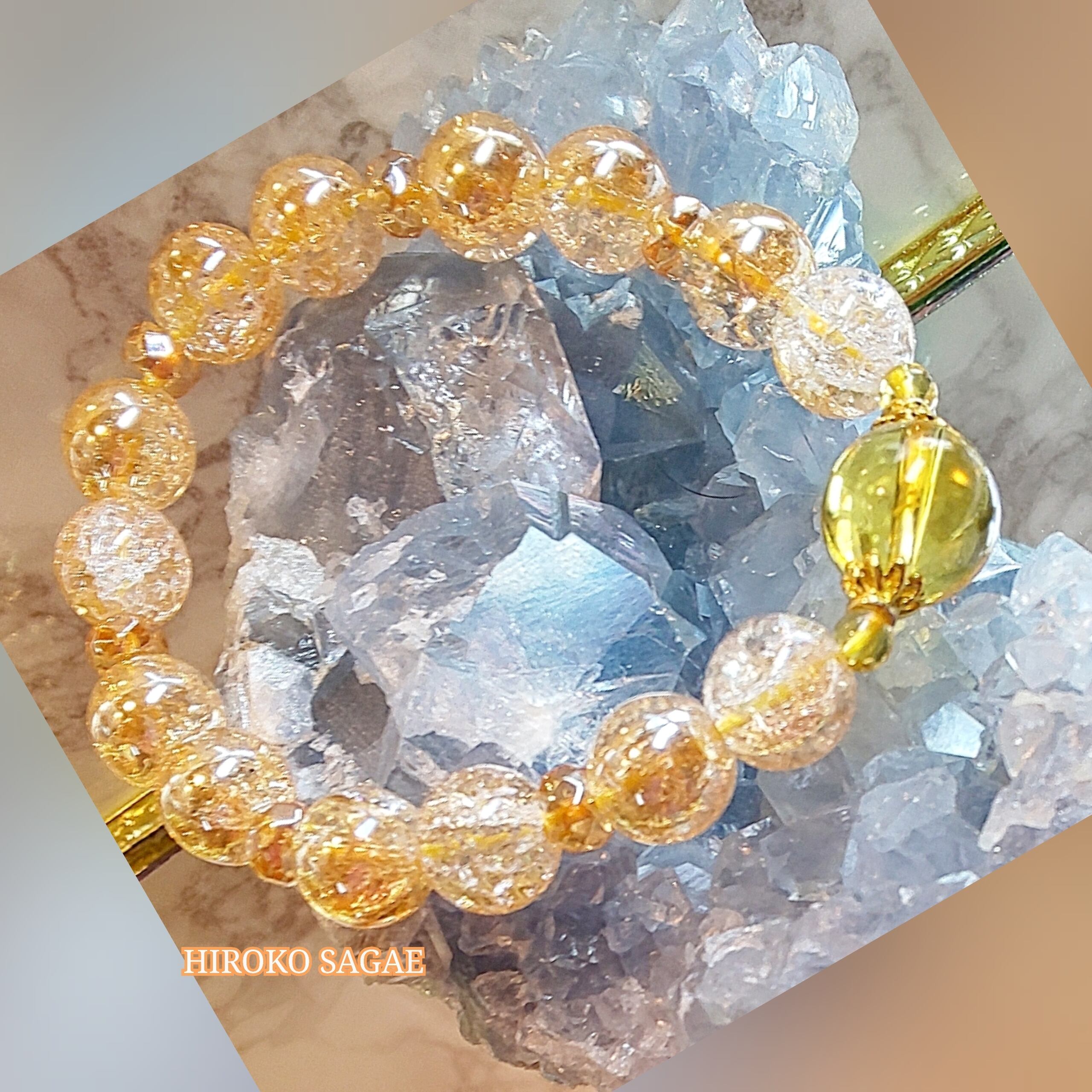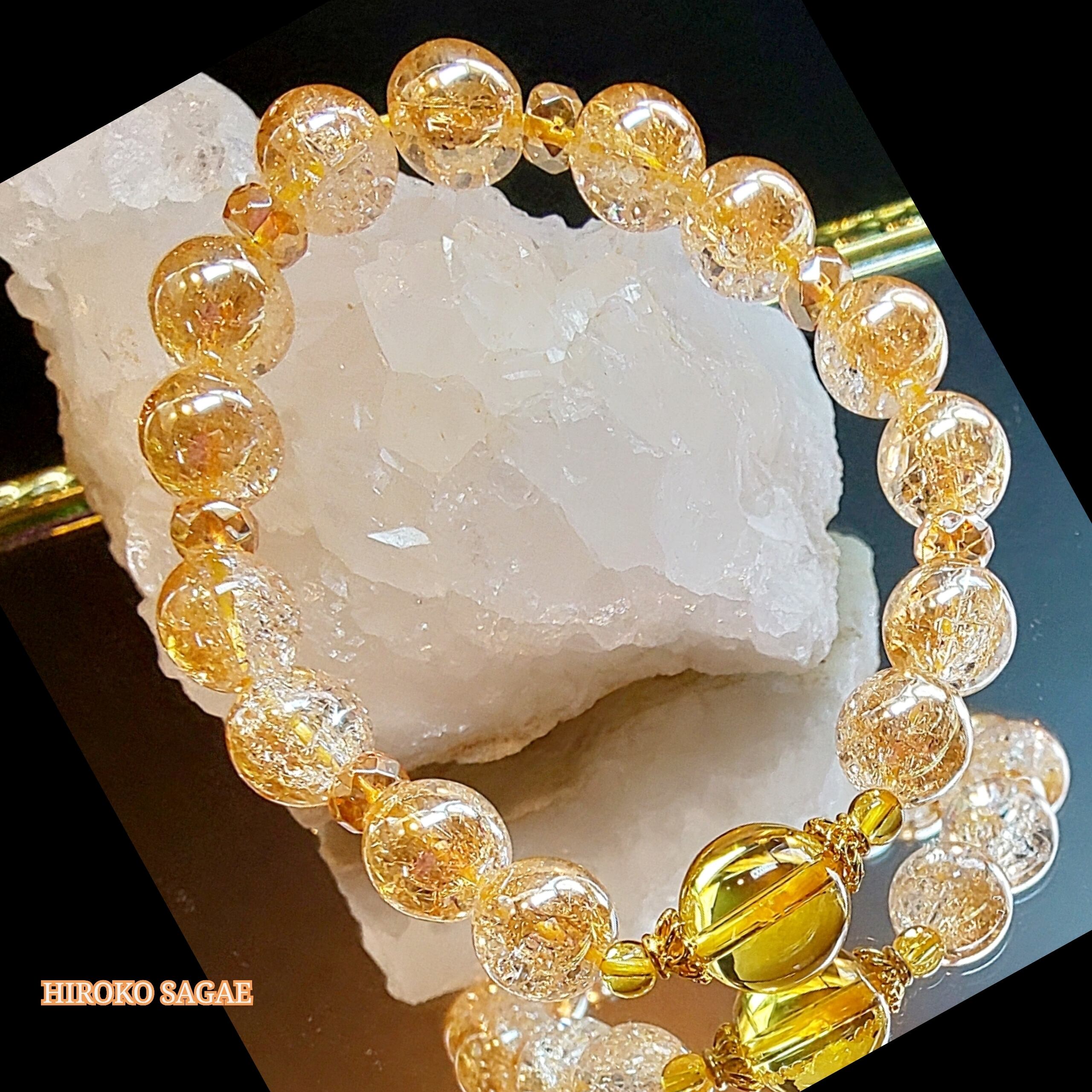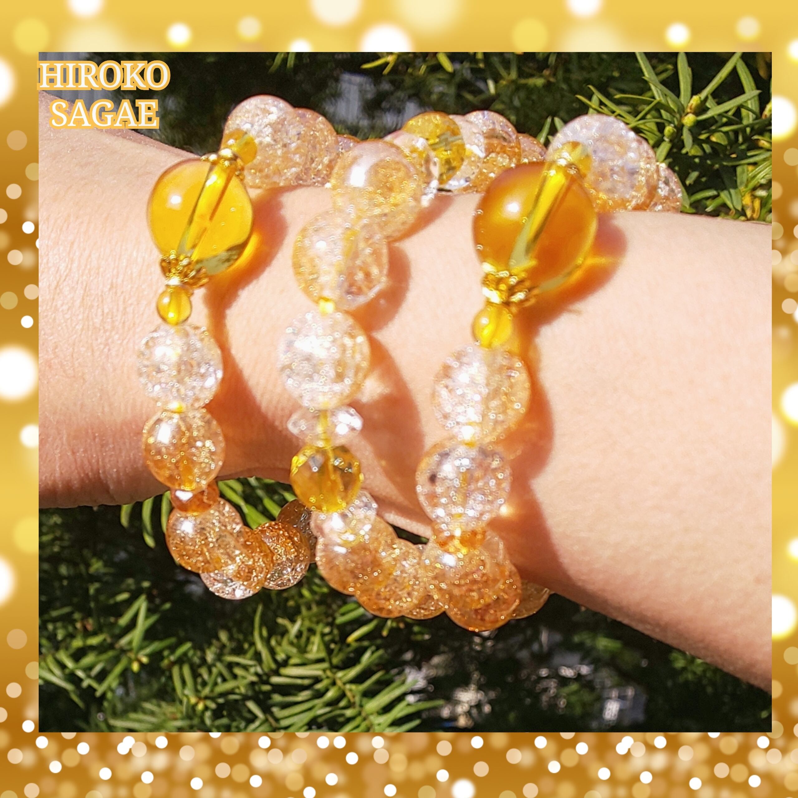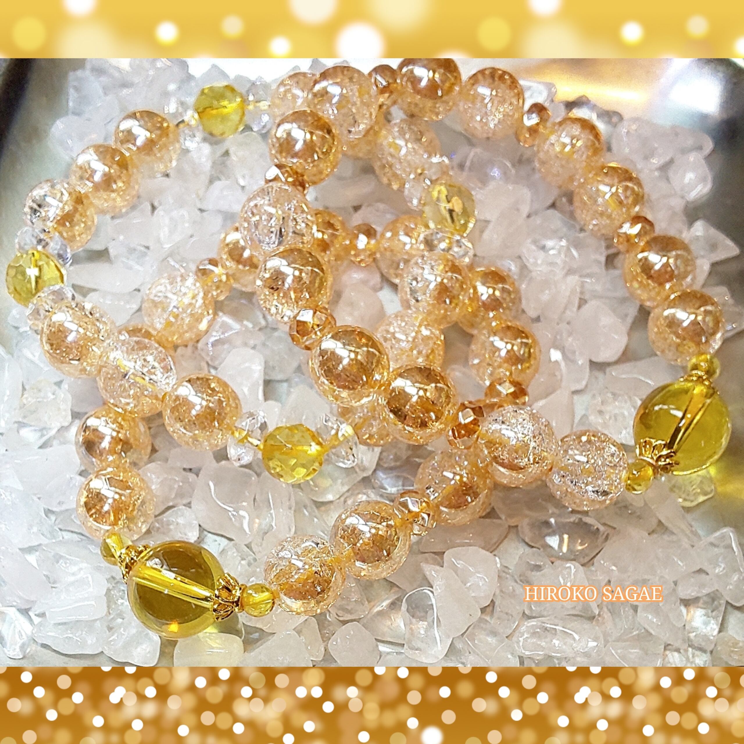 再☆金運アップ☆光☆幸運の引き寄せ♡健康長寿☆オーラの浄化☆ゴールデンオーラクラック水晶 レインボー☆シトリン☆