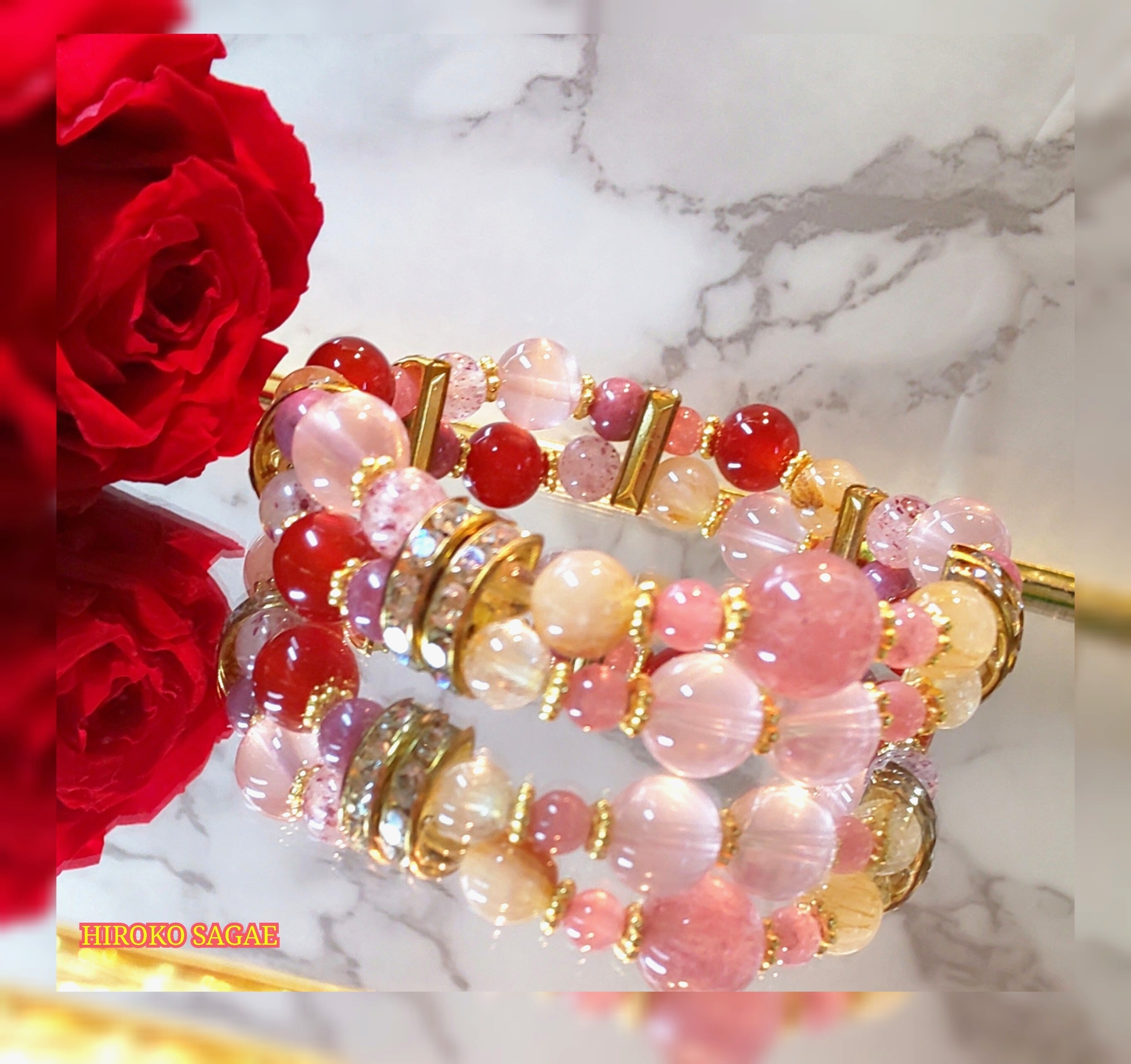 アフロディーテ♡美神 女神~①♡縁結び♡恋愛勝者! ストロベリークォーツ ディープスターローズクォーツ インカローズ 女性のお守り♡結婚式♡ブライダルアクセサリー♡パワーストーン☆天然石 バングル | 浪漫工房RoseEgg