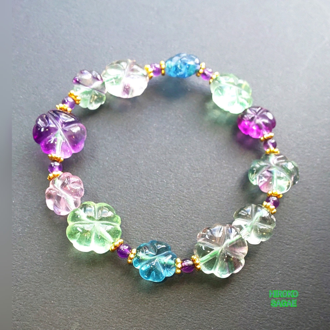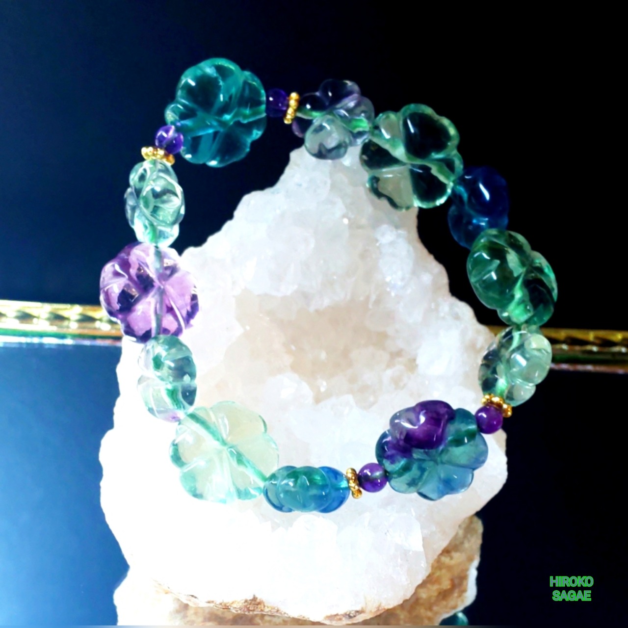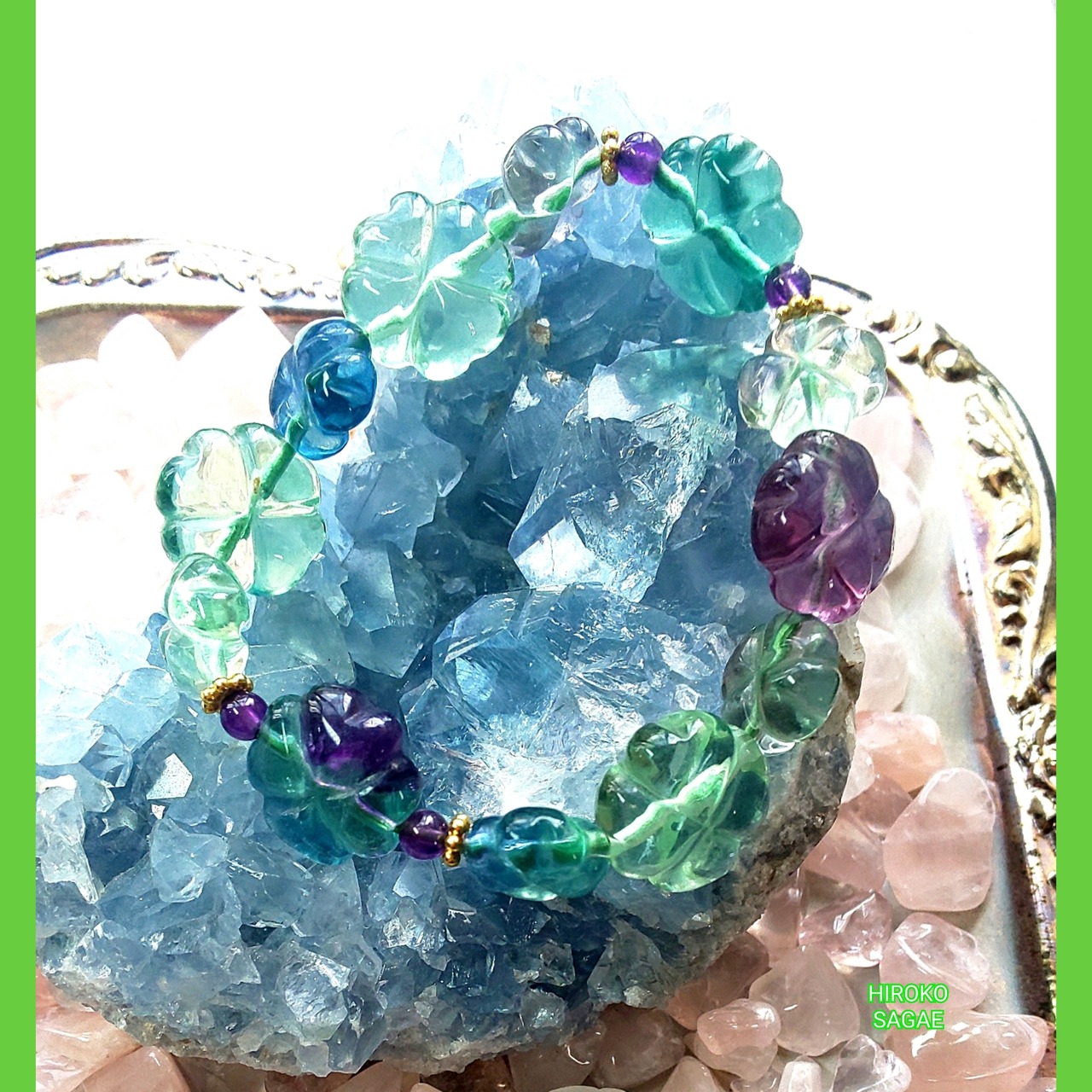 ♡幸運の四葉のクローバー♡フローライト&アメジスト 「天才の石」 オーラの浄化 瞑想 リラクゼーション ☆仕事☆試験の御守り NO.1