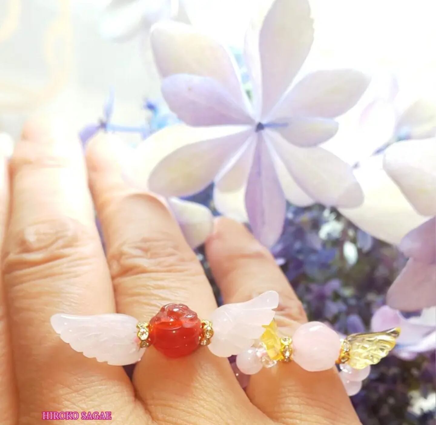 薔薇と天使 ☆天使の指輪 ♡ローズエンジェル ♡エンジェルリング ♡天使のアクセサリー ♡エンジェルヒーリング ♡パワーストーンリング☆天使の羽 中
