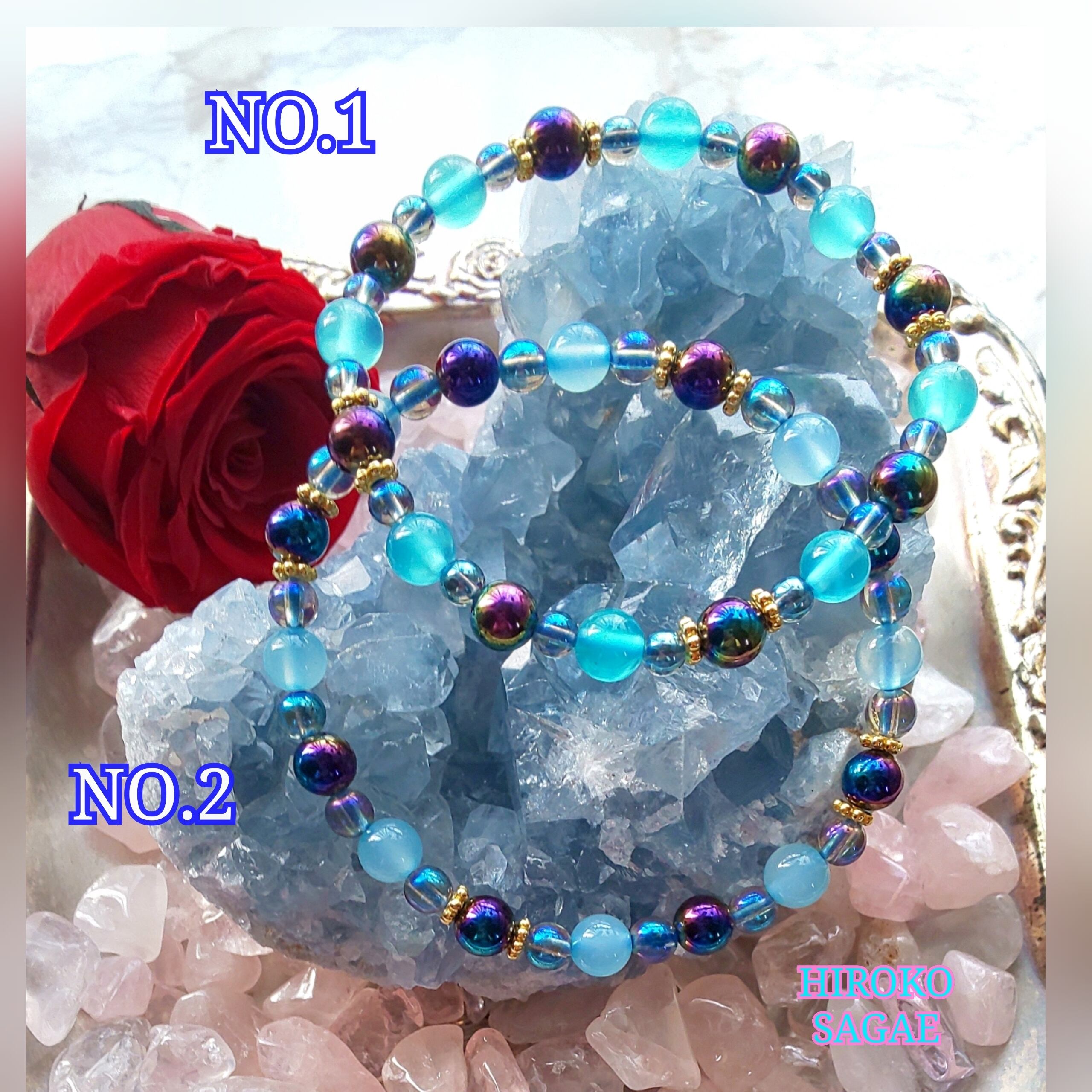 海神妃・アンフィトリテ・目標達成・恋愛運・チャンスを掴む・オニキスオーラ・シーブルカルセドニー・アクアオーラ・海 パワーストーン・海・ブレスレット NO.1