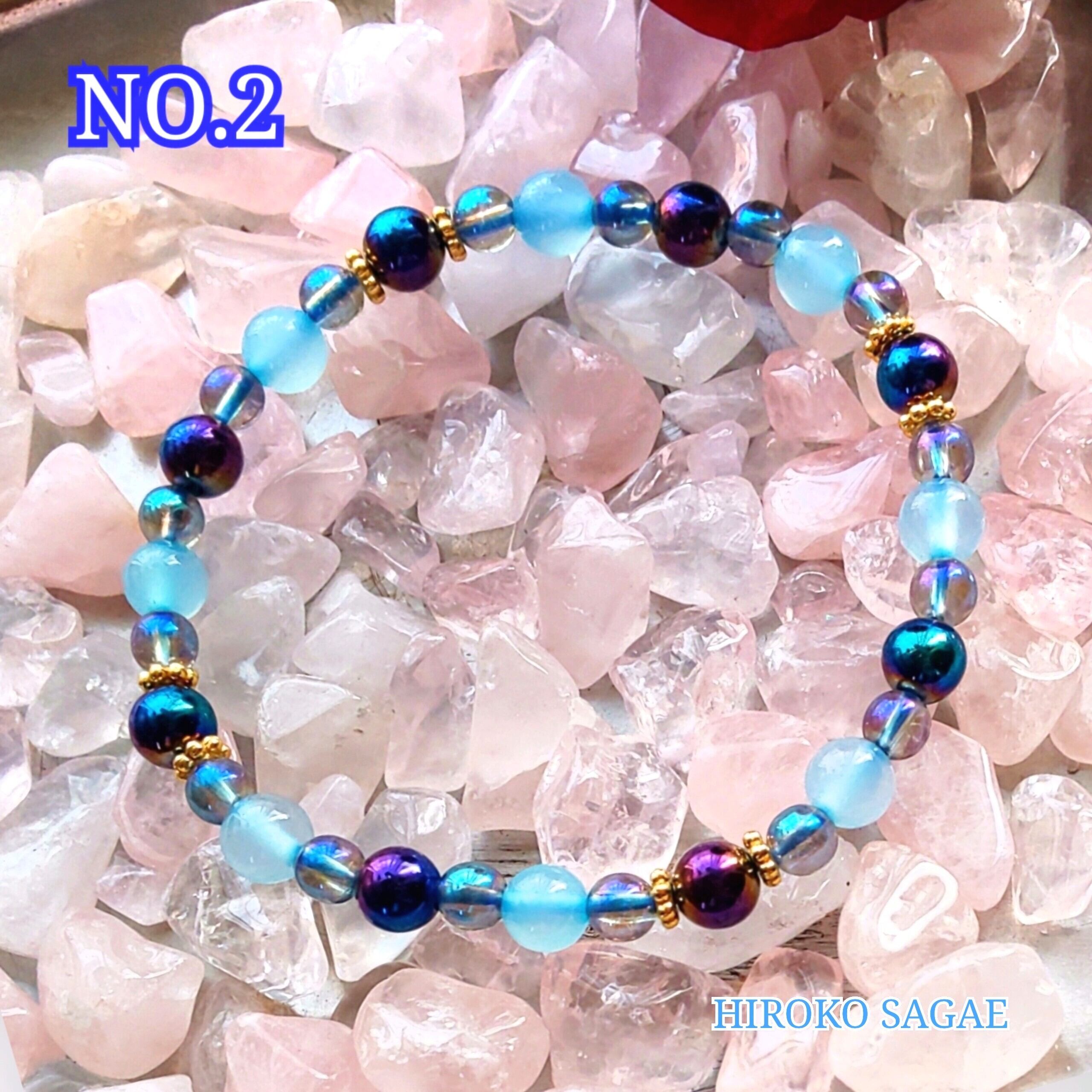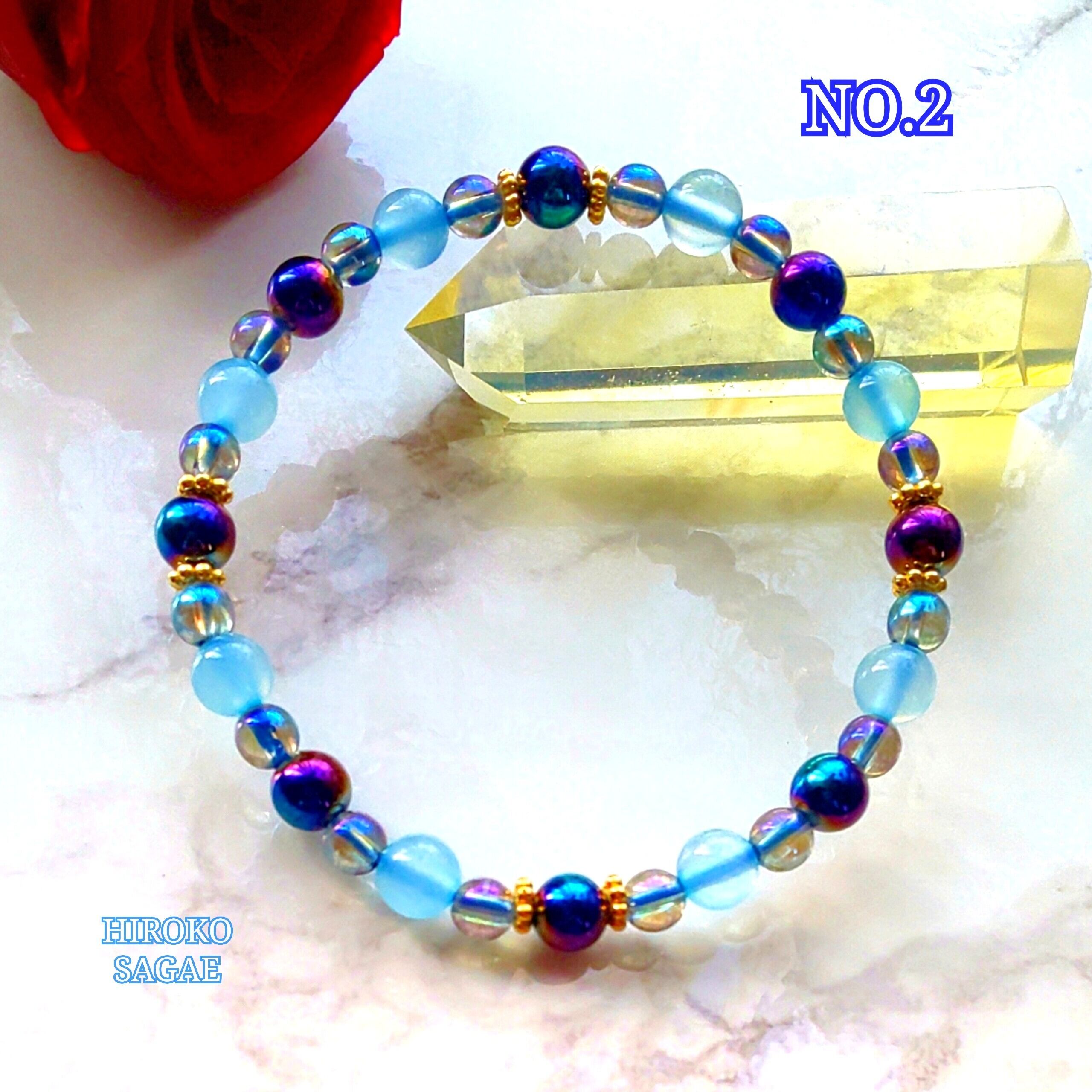 海神妃・アンフィトリテ・目標達成・恋愛運・チャンスを掴む・オニキスオーラ・シーブルカルセドニー・アクアオーラ・海・パワーストーン・海 ブレスレット・NO.2