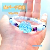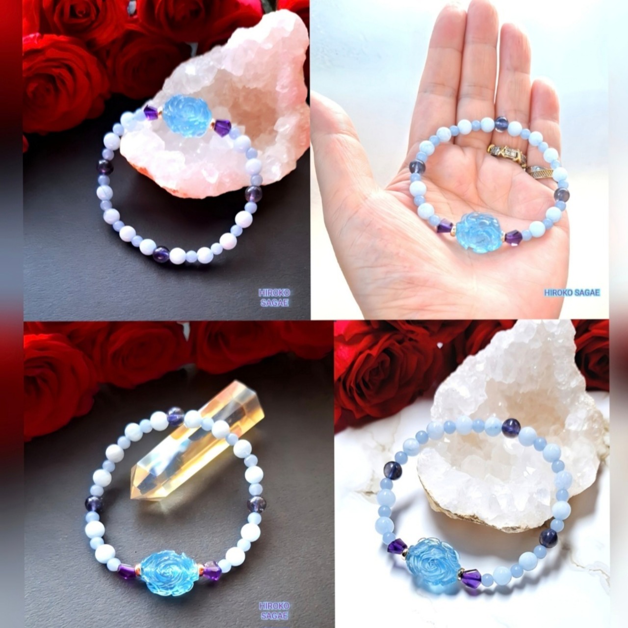 【幸福の青い薔薇】 アクアマリン ブレスレット アメジスト エンジェライト アイオライト 幸福 幸運 癒し 玉の輿 縁結び 良縁 恋愛運 フラワー ブレスレット 海 空 天使 「 ブルー / シアン」 | 浪漫工房RoseEgg