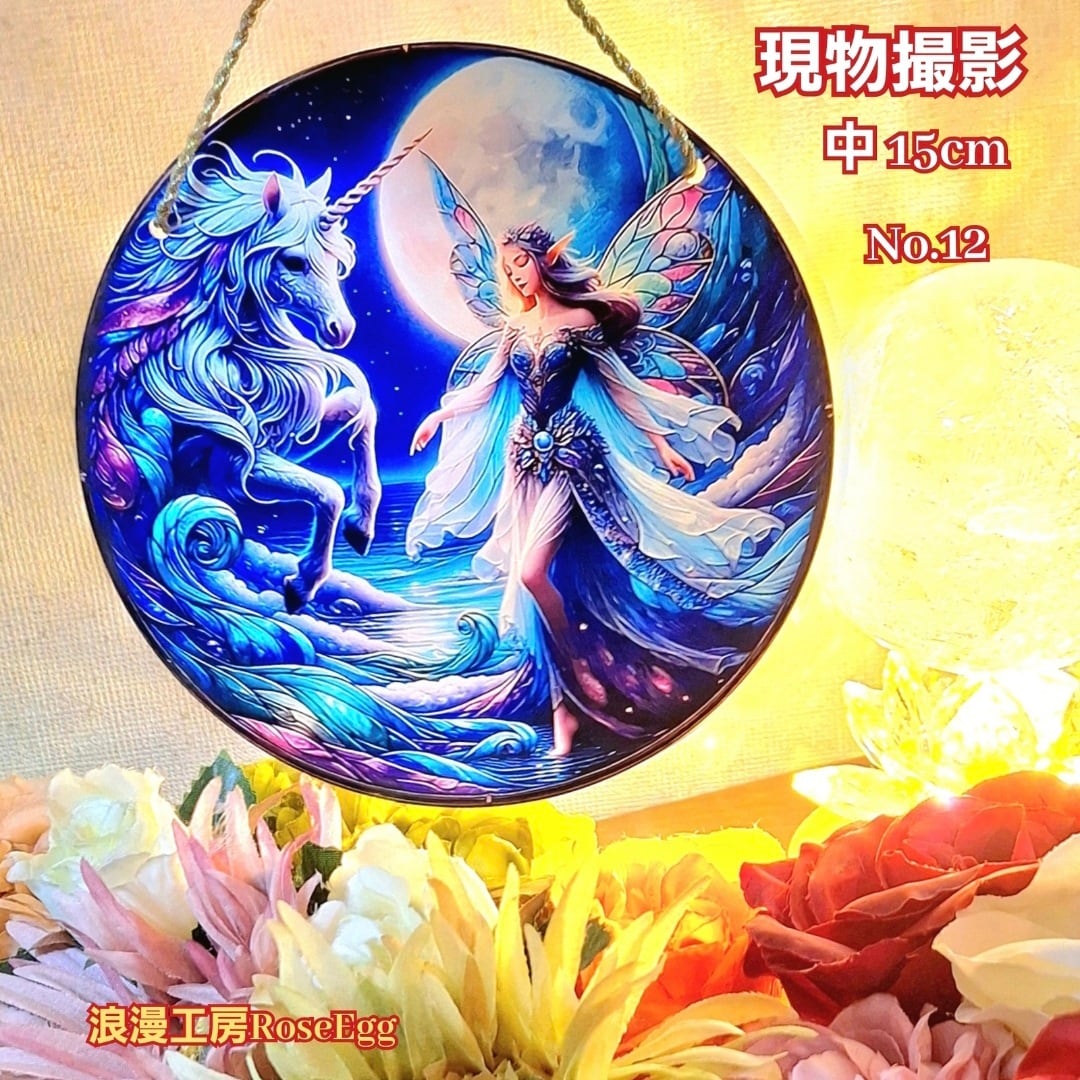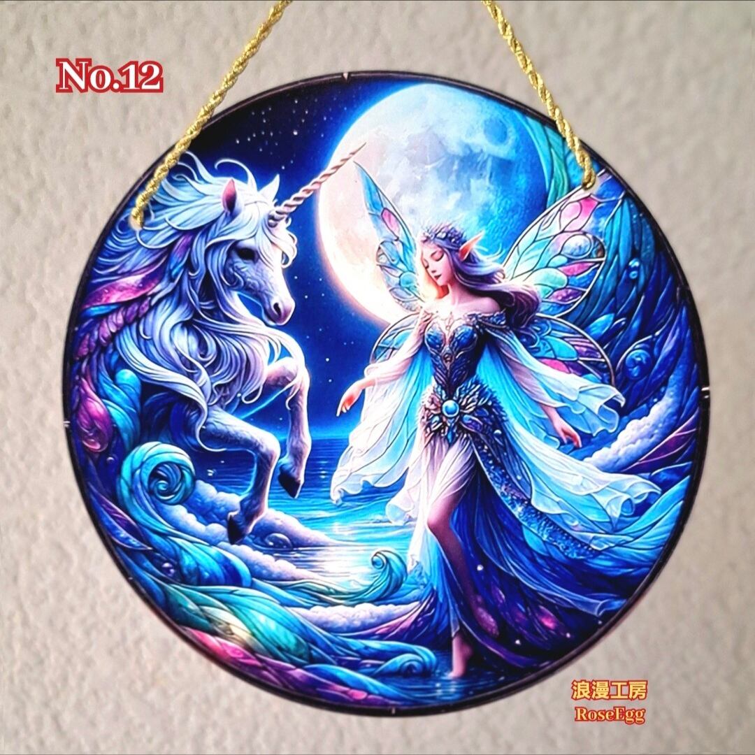 「両面」妖精 精霊 天使 ユニコーン ☆サンキャッチャー ☆ ステンドグラス 風 【条件付き送料無料】オーナメント フェアリー モビール シリーズ 開運インテリア No.12 | 浪漫工房RoseEgg