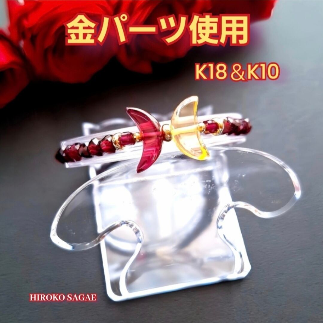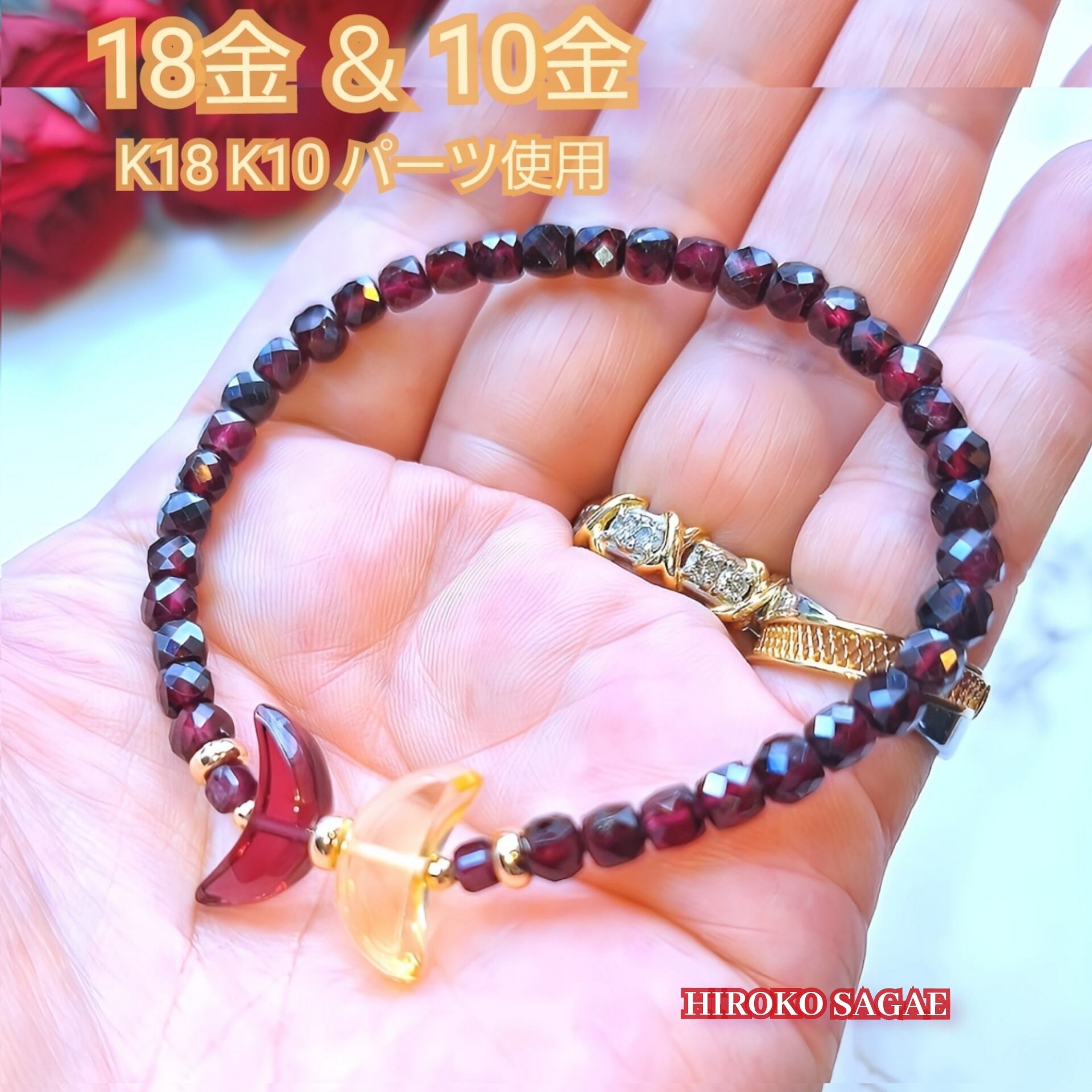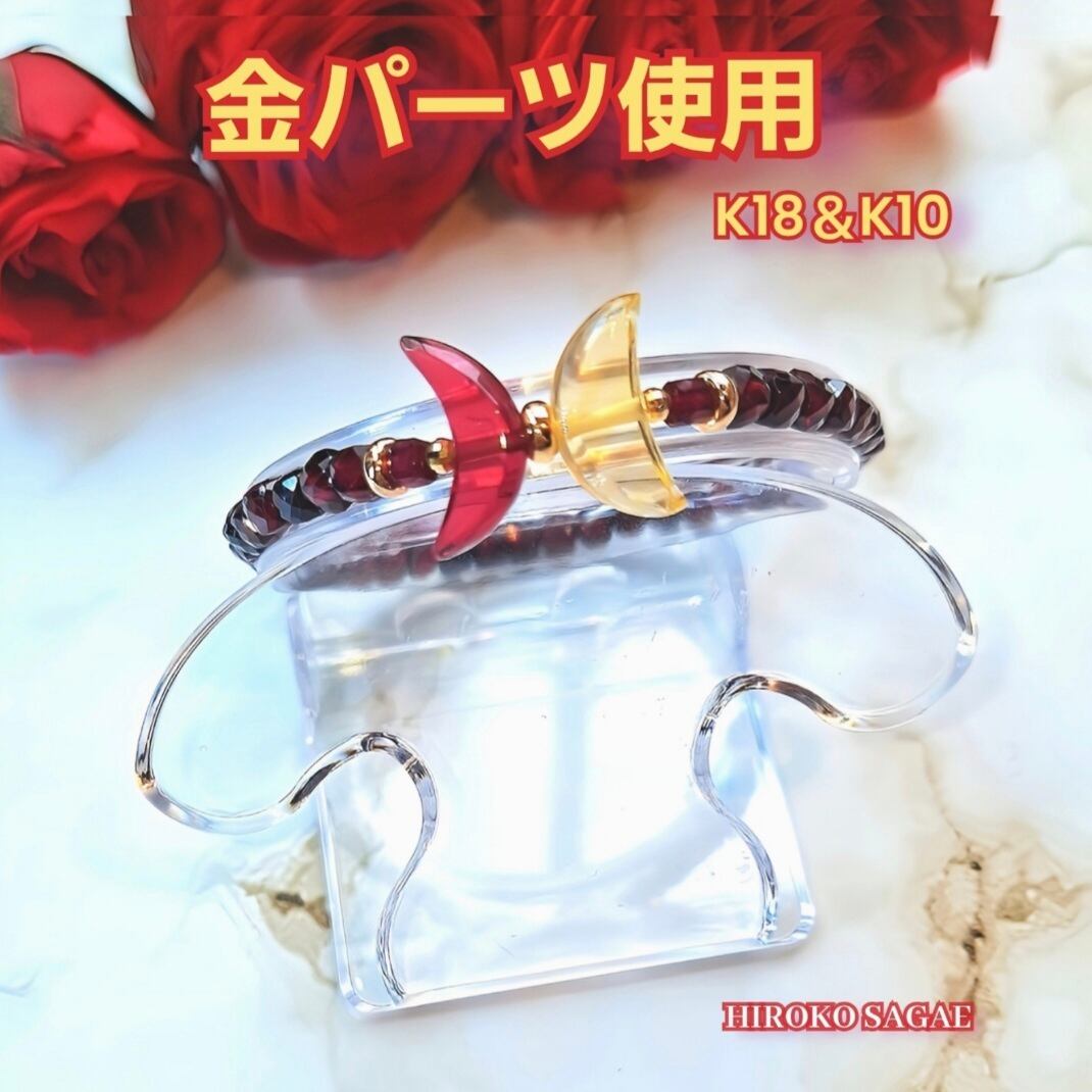 月の魔法 ダブルムーン ガーネット シトリン k18 k10 天然石 月 ブレスレット 心願成就 美神 女神 月に願いを 「 レッド / イエロー 」